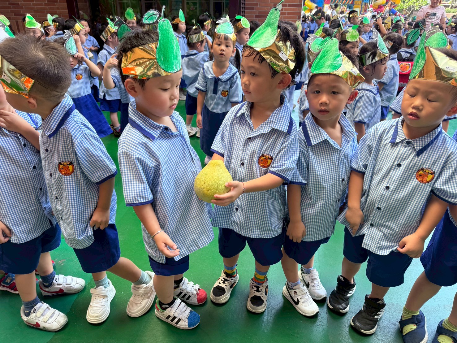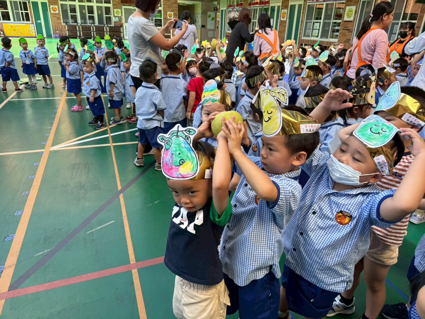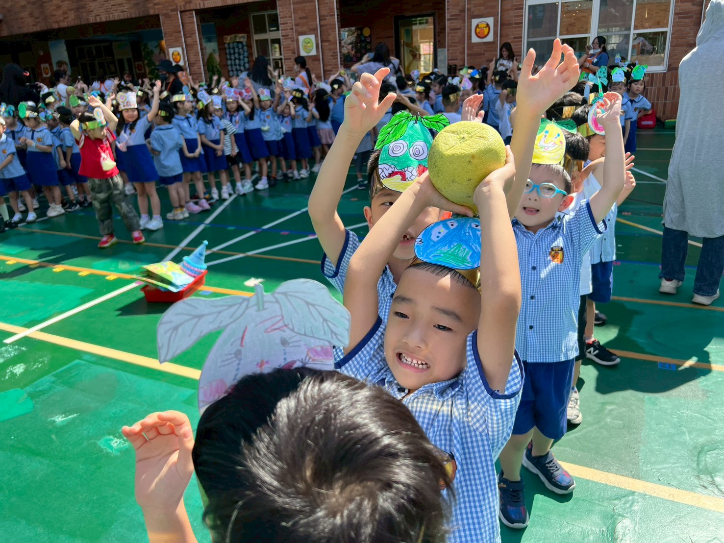 今天孩子玩起傳柚子的活動