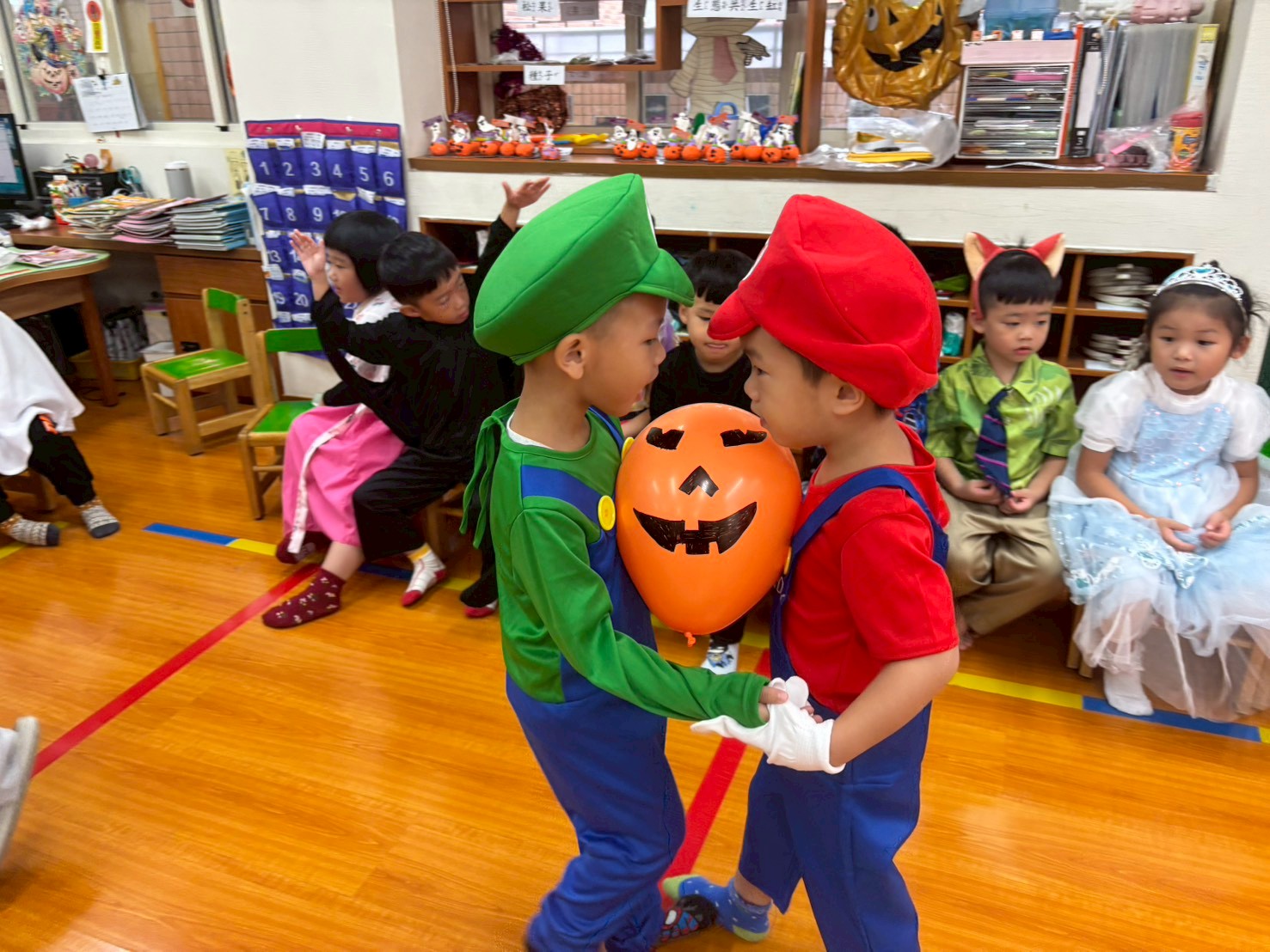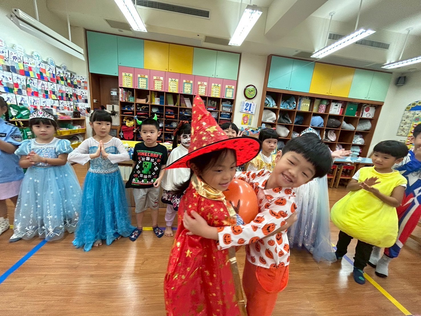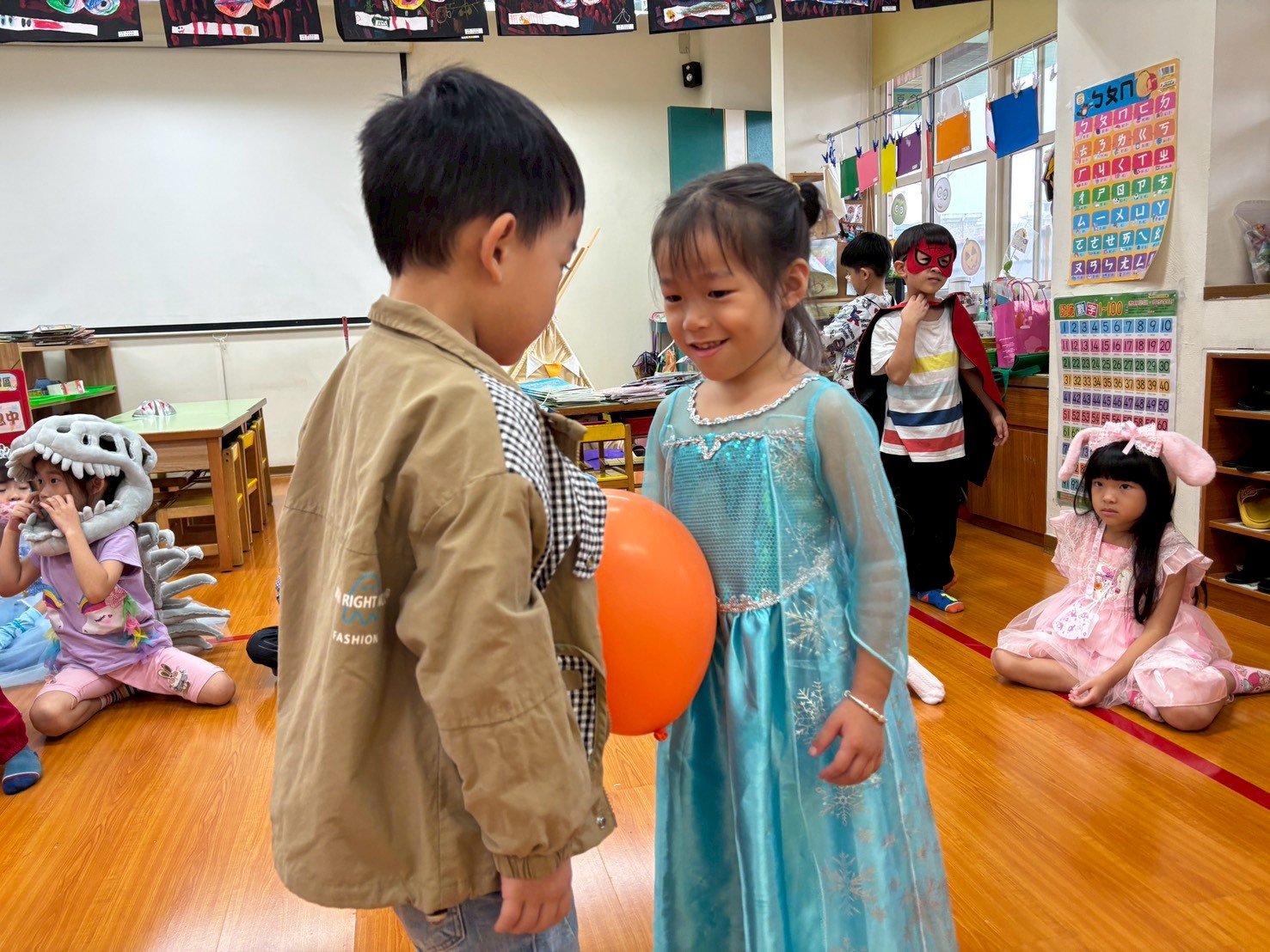 一早小朋友滿心歡喜的穿著爸媽準備的裝扮