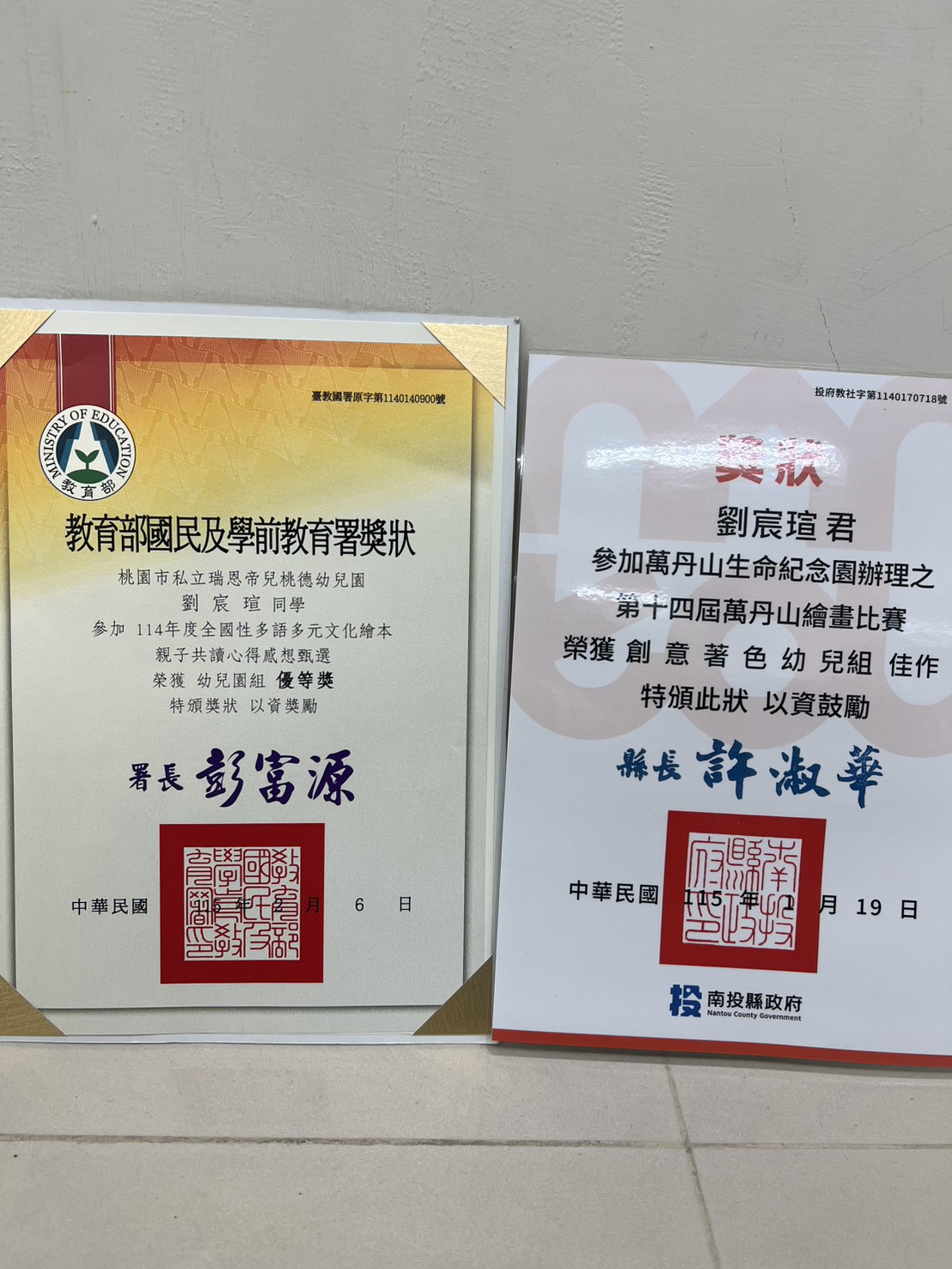 ~~賀~~ 劉宸瑄 參 加 114年度全產多語多元文化繪本 榮 獲 幼兒園組 優等獎 及 14屆萬丹山繪畫比賽 榮 獲 幼兒園組 佳作