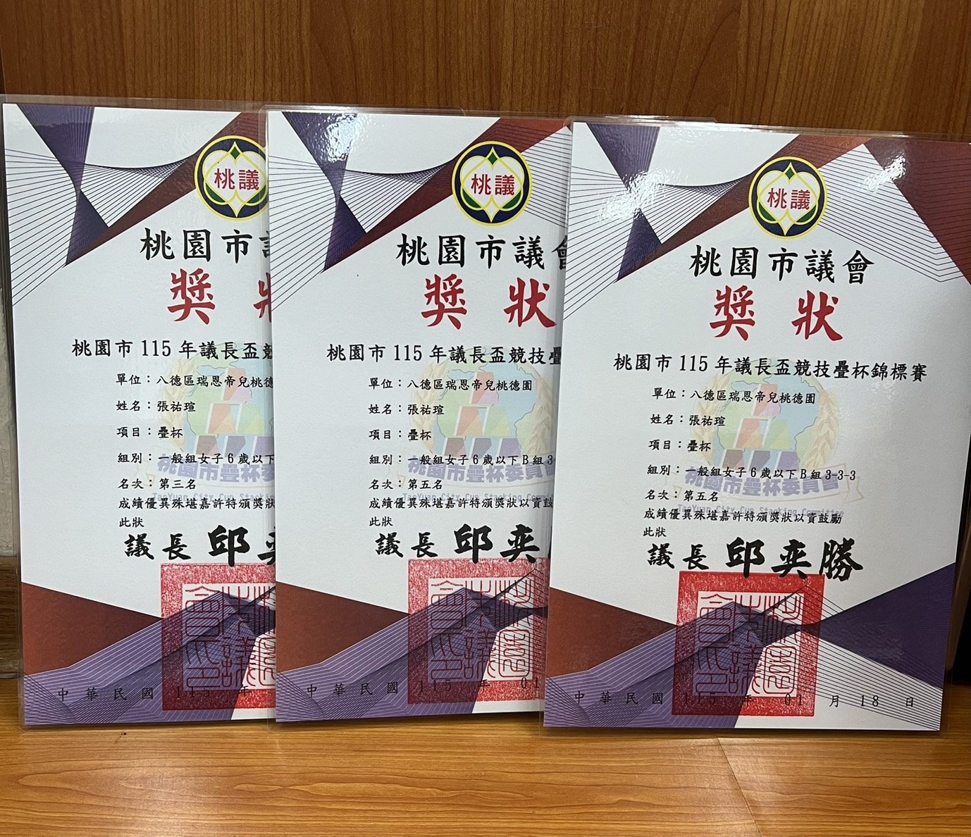 ~~賀~~ 張祐瑄 參 加 桃園市115年議長有競技疊杯錦標賽 榮 獲 女子6歲以下 3-3-3 第五名 3-6-3 第五名 CYCLE 第三名